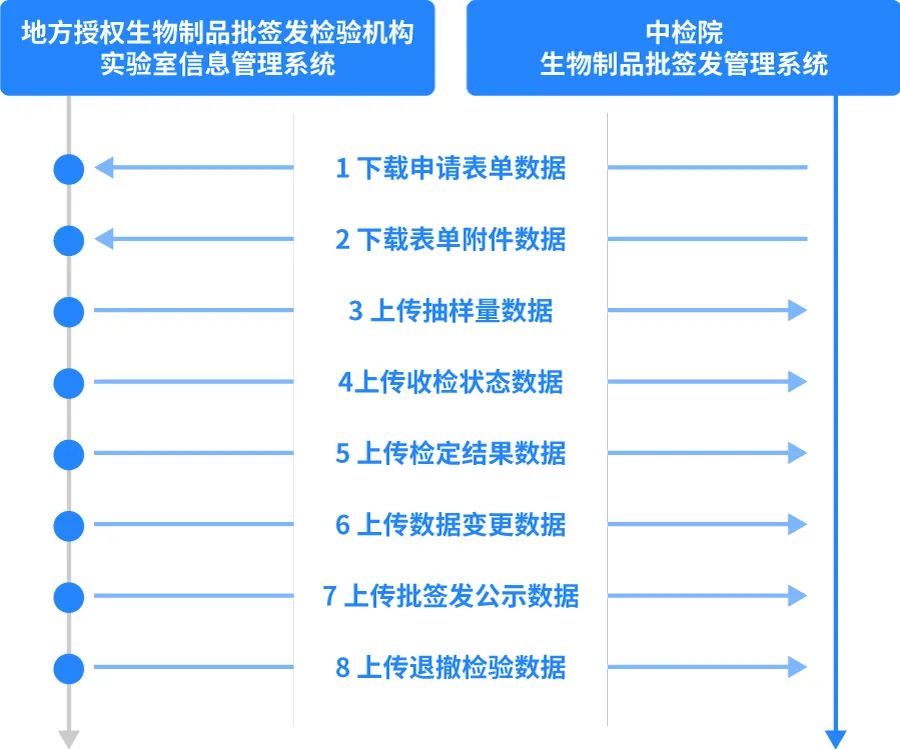 系統(tǒng)支持與中檢院生物制品批簽發(fā)管理系統(tǒng)的直接對(duì)接,實(shí)現(xiàn)疫苗批簽發(fā)申請(qǐng)表單數(shù)據(jù)及附件信息的自動(dòng)獲取,實(shí)現(xiàn)抽樣量數(shù)據(jù)、收檢狀態(tài)數(shù)據(jù)、檢定結(jié)果數(shù)據(jù)、數(shù)據(jù)變更數(shù)據(jù)、批簽發(fā)公示數(shù)據(jù)、退撤檢數(shù)據(jù)的自動(dòng)上傳,大幅度減少實(shí)驗(yàn)室業(yè)務(wù)受理人員、數(shù)據(jù)上報(bào)人員對(duì)相同信息在不同系統(tǒng)中重復(fù)錄入的工作量,確保信息的完整性和一致性,提升批簽發(fā)工作效率,提升批簽發(fā)信息上報(bào)及時(shí)性。
