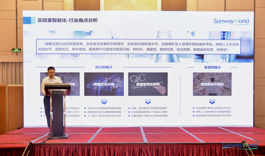 11月27日,第二屆廣東省T20第三方檢驗(yàn)檢測(cè)機(jī)構(gòu)高質(zhì)量發(fā)展論壇暨廣東省分析測(cè)試協(xié)會(huì)2023分析測(cè)試年會(huì)、分析測(cè)試高峰論壇在廣州圓滿落下帷幕。來(lái)自廣東省內(nèi)各有關(guān)分析測(cè)試單位和組織、各行業(yè)的分析測(cè)試學(xué)者、工作者、科學(xué)儀器研制和推廣應(yīng)用相關(guān)從業(yè)人員出席會(huì)議。 大會(huì)內(nèi)容聚焦新型污染物檢測(cè)、生命分析與健康、科學(xué)儀器研制、智能化設(shè)備與智慧實(shí)驗(yàn)室管理、食品快速檢測(cè)技術(shù)、近紅外光譜技術(shù)的應(yīng)用等前沿和熱點(diǎn)領(lǐng)域,分享最新成果及技術(shù)進(jìn)展,探討新興分析方法、測(cè)試技術(shù)及其應(yīng)用。本次論壇設(shè)立了六個(gè)討論專場(chǎng)。在由廣州海關(guān)技術(shù)中心主持的智能化設(shè)備與智慧實(shí)驗(yàn)室管理專場(chǎng)中,三維天地公司的副總裁吳長(zhǎng)征應(yīng)邀發(fā)表了主題為《實(shí)驗(yàn)室智能化設(shè)備與智能大腦》的特邀報(bào)告。 在報(bào)告中,吳長(zhǎng)征主要介紹了實(shí)驗(yàn)室智能化設(shè)備與智能大腦之間的交互及其應(yīng)用場(chǎng)景,詳細(xì)闡述了二者間如何相互配合,以發(fā)揮各自最大效能,并介紹了三維天地智慧實(shí)驗(yàn)室管理解決方案。此外,他以實(shí)例就智能大腦在實(shí)驗(yàn)室各類業(yè)務(wù)場(chǎng)景的應(yīng)用,從軟件層面上結(jié)合檢測(cè)流程提供了信息匯聚、大數(shù)據(jù)處理、AI學(xué)習(xí)、任務(wù)分配、執(zhí)行命令等信息,匯集為智能大腦進(jìn)行指揮,從而有效提升實(shí)驗(yàn)室的智能化程度。 吳長(zhǎng)征指出,隨著檢測(cè)行業(yè)的持續(xù)發(fā)展以及實(shí)驗(yàn)室業(yè)務(wù)的不斷增長(zhǎng),傳統(tǒng)的實(shí)驗(yàn)室管理方式由于過(guò)度依賴人工操作,已經(jīng)無(wú)法滿足在檢測(cè)水平、流程優(yōu)化、成本效益提升和服務(wù)質(zhì)量提高等方面的需求,實(shí)驗(yàn)室面臨著諸如耗時(shí)過(guò)長(zhǎng)、通量較低、穩(wěn)定性不足、存在安全隱患、數(shù)據(jù)追蹤性欠佳等問(wèn)題。同時(shí),面對(duì)日益增加的檢測(cè)難度和復(fù)雜性,實(shí)驗(yàn)室管理人員還面臨著數(shù)據(jù)共享困難、質(zhì)量規(guī)范難以實(shí)現(xiàn)等執(zhí)行層面的痛點(diǎn),以及管理工作規(guī)劃不到位的困境。 隨著物聯(lián)網(wǎng)等高新技術(shù)的發(fā)展,面對(duì)上述種種困境,實(shí)現(xiàn)對(duì)分析測(cè)試實(shí)驗(yàn)室的智慧化管理是一種必然趨勢(shì)。三維天地針對(duì)性地打造了一套智慧實(shí)驗(yàn)室綜合管理解決方案,如同為實(shí)驗(yàn)室裝上了一顆“智能大腦”,通過(guò)應(yīng)用各類數(shù)字化技術(shù)與智能化設(shè)備和應(yīng)用系統(tǒng)進(jìn)行有機(jī)融合,并通過(guò)實(shí)驗(yàn)過(guò)程自動(dòng)化執(zhí)行平臺(tái)的構(gòu)建,可深度整合各業(yè)務(wù)模塊,協(xié)調(diào)使用各項(xiàng)資源,形成一個(gè)高效的管控整體,從而顯著提升實(shí)驗(yàn)室的綜合運(yùn)營(yíng)與協(xié)作效率,優(yōu)化實(shí)驗(yàn)室資源管理與安全管理。 三維天地智能實(shí)驗(yàn)室綜合管理平臺(tái)能夠?qū)崿F(xiàn)所有自動(dòng)化硬件裝備的集中調(diào)度。通過(guò)LIMS 系統(tǒng)下達(dá)任務(wù),樣品在各設(shè)備間由 LEAP 系統(tǒng)控制設(shè)備完成實(shí)驗(yàn)操作,實(shí)現(xiàn)自動(dòng)化服務(wù)。方案的框架結(jié)構(gòu)自上而下包括企業(yè)管理層、生產(chǎn)管理層、現(xiàn)場(chǎng)管理層以及設(shè)備管理層;具備標(biāo)準(zhǔn)化實(shí)驗(yàn)?zāi)K、模塊內(nèi)更加靈活,通過(guò)智能化軟件平臺(tái)實(shí)現(xiàn)多任務(wù)智能調(diào)度、可擴(kuò)展性強(qiáng)、全流程數(shù)據(jù)可追溯并且滿足實(shí)驗(yàn)個(gè)性化需求。 智能大腦采用LIMS+AI技術(shù)構(gòu)建了專業(yè)的基礎(chǔ)平臺(tái)AiLIMS。并通過(guò)AI+BI實(shí)現(xiàn)從數(shù)據(jù)抽取/接入、數(shù)據(jù)融合、數(shù)據(jù)處理到報(bào)告展示的全過(guò)程的數(shù)據(jù)治理與挖掘,沉淀有價(jià)值數(shù)據(jù)資產(chǎn);通過(guò)數(shù)據(jù)可視化分析,支持實(shí)驗(yàn)室的精細(xì)化和規(guī)范化管理,同時(shí)也為上級(jí)主管部門(mén)的監(jiān)管決策提供了有力支撐。 同時(shí),智能大腦通過(guò)集成機(jī)器學(xué)習(xí)算法,可實(shí)現(xiàn)從樣本獲取、樣本處理、模型訓(xùn)練、模型評(píng)估及模型應(yīng)用的全過(guò)程機(jī)器學(xué)習(xí),并找出最優(yōu)模型,進(jìn)一步提高實(shí)驗(yàn)效率和準(zhǔn)確性。作為一套全場(chǎng)景全流程智能化管理解決方案,智能大腦可以根據(jù)不同的實(shí)驗(yàn)場(chǎng)景和研發(fā)需求進(jìn)行定制化開(kāi)發(fā),有效實(shí)現(xiàn)設(shè)備銜接、流程銜接以及數(shù)據(jù)銜接。此外,實(shí)驗(yàn)過(guò)程中的所有數(shù)據(jù)和信息都會(huì)同步到LEAP和LIMS中,通過(guò)OneID打通全部信息,實(shí)現(xiàn)全流程檢測(cè)閉環(huán)。 實(shí)驗(yàn)室作為檢驗(yàn)行業(yè)的重要基石,其建設(shè)和發(fā)展受到了行業(yè)內(