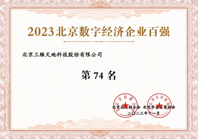 持續(xù)蟬聯(lián)!三維天地入選2023北京數(shù)字經(jīng)濟企業(yè)百強榜單