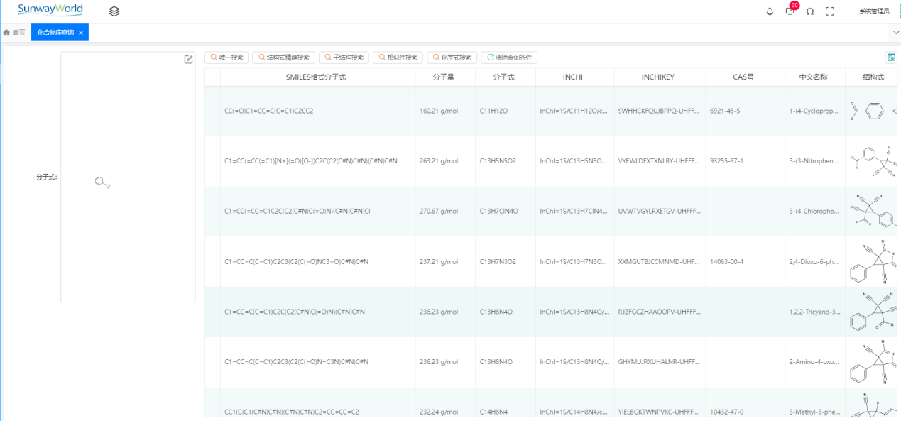 在藥品研發(fā)過程中,化合物管理是至關(guān)重要的一環(huán)。它涉及新藥的研發(fā)、生產(chǎn)、質(zhì)量控制等多個環(huán)節(jié),對于提高藥品研發(fā)效率和質(zhì)量具有重要意義。隨著信息化進(jìn)程的加快,越來越多的企業(yè)開始采用信息化系統(tǒng)來管理化合物,以提高新藥研發(fā)的效率和準(zhǔn)確性。 三維天地根據(jù)多年醫(yī)藥行業(yè)實施經(jīng)驗打造了一套合規(guī)、科學(xué)、高效,符合規(guī)范的醫(yī)藥科研管理系統(tǒng)(SW-RDMS),助力研發(fā)機(jī)構(gòu)實現(xiàn)藥物研發(fā)過程的科學(xué)化、電子化、信息化管理。 SW-RDMS針對藥物研發(fā)企業(yè)信息化管理提供了全面的業(yè)務(wù)解決方案,其中化合物管理模塊內(nèi)容涵蓋化合物注冊及化合物庫存管理、化合物信息庫管理、注冊化合物檢索查詢、化合物數(shù)據(jù)權(quán)限控制等各方面內(nèi)容,在滿足藥物研發(fā)日常工作使用的同時,更強(qiáng)調(diào)研發(fā)成果的管理及維護(hù),助力企業(yè)建立標(biāo)準(zhǔn)的化合物管理方式。 2.1 化合物注冊及化合物庫存管理 SW-RDMS提供完備的化合物注冊流程,除支持常規(guī)方法登記注冊新產(chǎn)生的化合物外,還可與ELN進(jìn)行聯(lián)動,將實驗產(chǎn)生的化合物一鍵注冊,注冊內(nèi)容包括記錄化合物編號、注冊類型、化合物名稱、結(jié)構(gòu)式、基本理化信息、結(jié)構(gòu)確證信息、分析檢驗信息、藥理毒理信息等。 此外還支持管理注冊的化合物庫存存量信息、批次信息,在后續(xù)實驗過程中可直接引入使用。 2.2 注冊化合物檢索查詢 SW-RDMS支持對注冊的化合物進(jìn)行多種方式的檢索查詢,如通過基本信息檢索查詢、通過已知的結(jié)構(gòu)式精確搜索或相似性搜索、通過部分母核結(jié)構(gòu)進(jìn)行子結(jié)構(gòu)搜索等。 2.3 化合物信息庫管理 為便于研發(fā)人員更方便地查詢化合物信息,SW-RDMS提供了不少于2000萬條公開化合物數(shù)據(jù)的信息庫(支持每周30萬數(shù)據(jù)量的擴(kuò)增),記錄信息內(nèi)容包括化合物基礎(chǔ)標(biāo)識信息、理化信息、晶體結(jié)構(gòu)等。 在實際使用中研發(fā)人員在實驗過程中可通過分子式、CAS號等信息、結(jié)構(gòu)式進(jìn)行化合物檢索后,將檢索出的化合物直接導(dǎo)入到實驗記錄中,大大減少重新繪制結(jié)構(gòu)式的工作,為研發(fā)實驗提供便利。 2.4 化合物數(shù)據(jù)安全控制 在化合物數(shù)據(jù)安全性方面,SW-RDMS支持通過數(shù)據(jù)加密的方式來保證機(jī)密數(shù)據(jù)不易泄露,通過權(quán)限的配置來控制化合物庫的訪問,達(dá)到保護(hù)化合物庫免受非法訪問和濫用的目的。