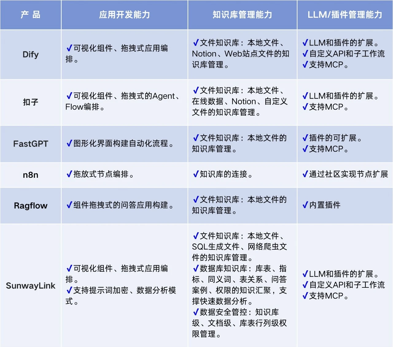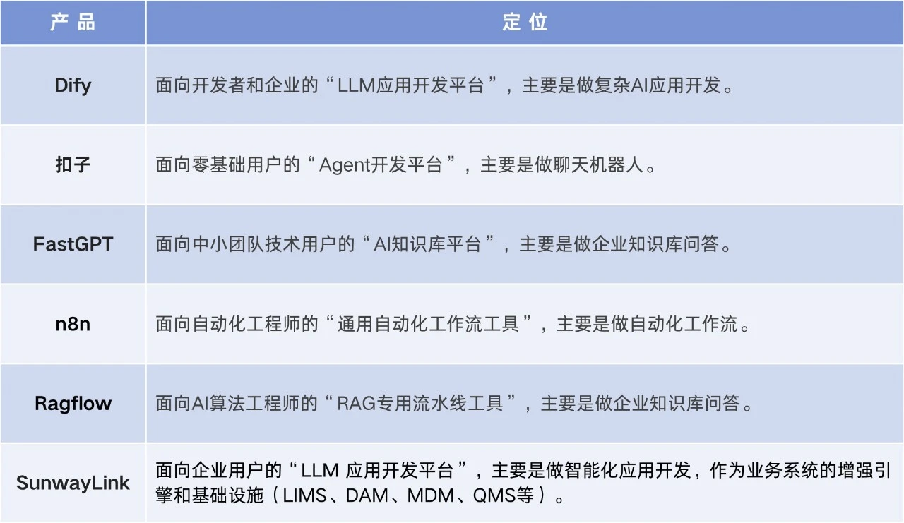 AI應用開發(fā)平臺,Dify、扣子、FastGPT、n8n、Ragflow、SunwayLink怎么選?