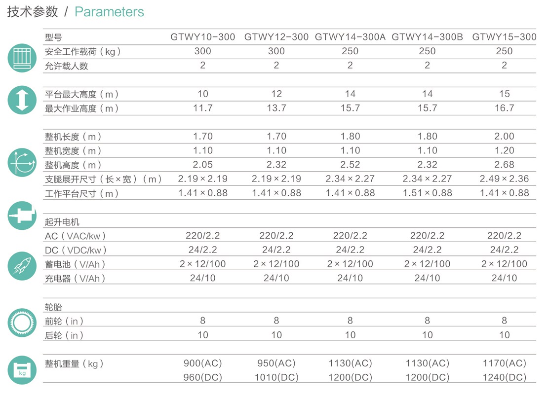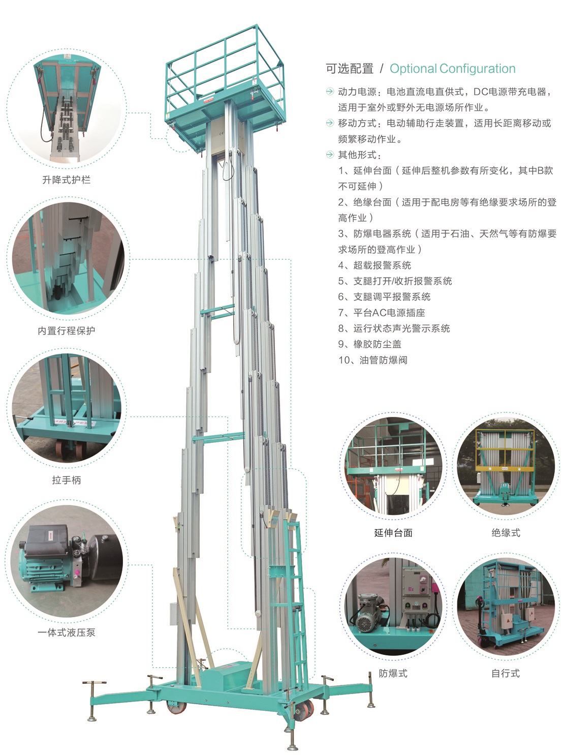 平臺(tái)最大高度規(guī)格:可選 10m、12m、14m、15m